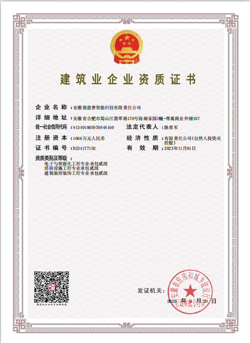 的施工。此二级资质的获得是对德恩普装饰装修能力的综合评定