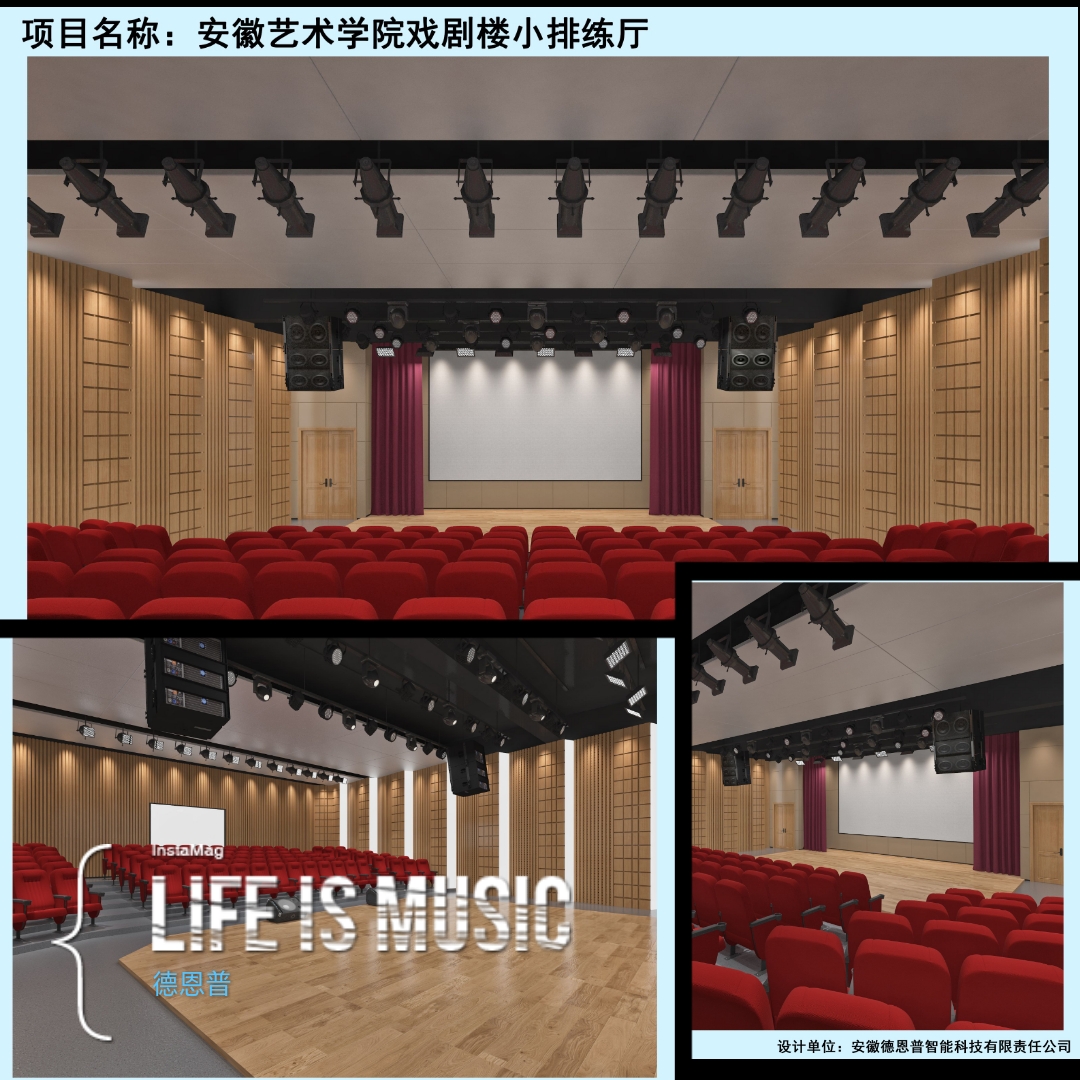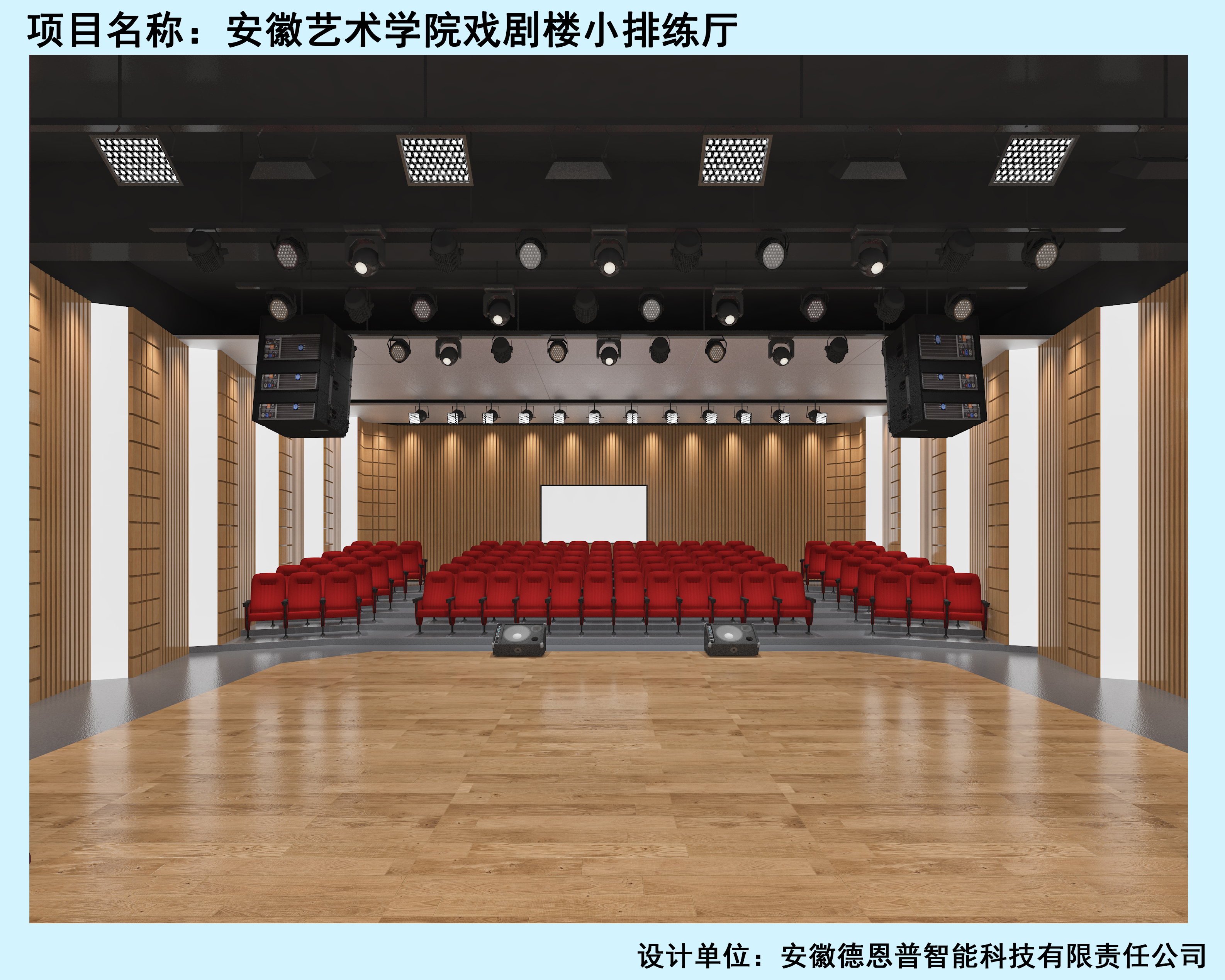本项目为安徽艺术学院戏剧楼三楼小排练厅音视频系统及装饰工程,场