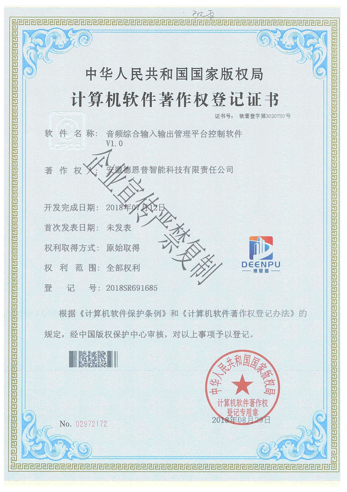 计算机软件著作权登记证书