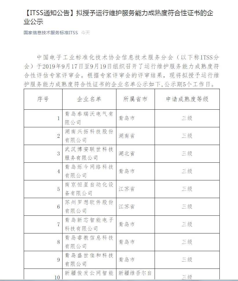 热烈庆祝我公司“ITSS三级认证”申请通过