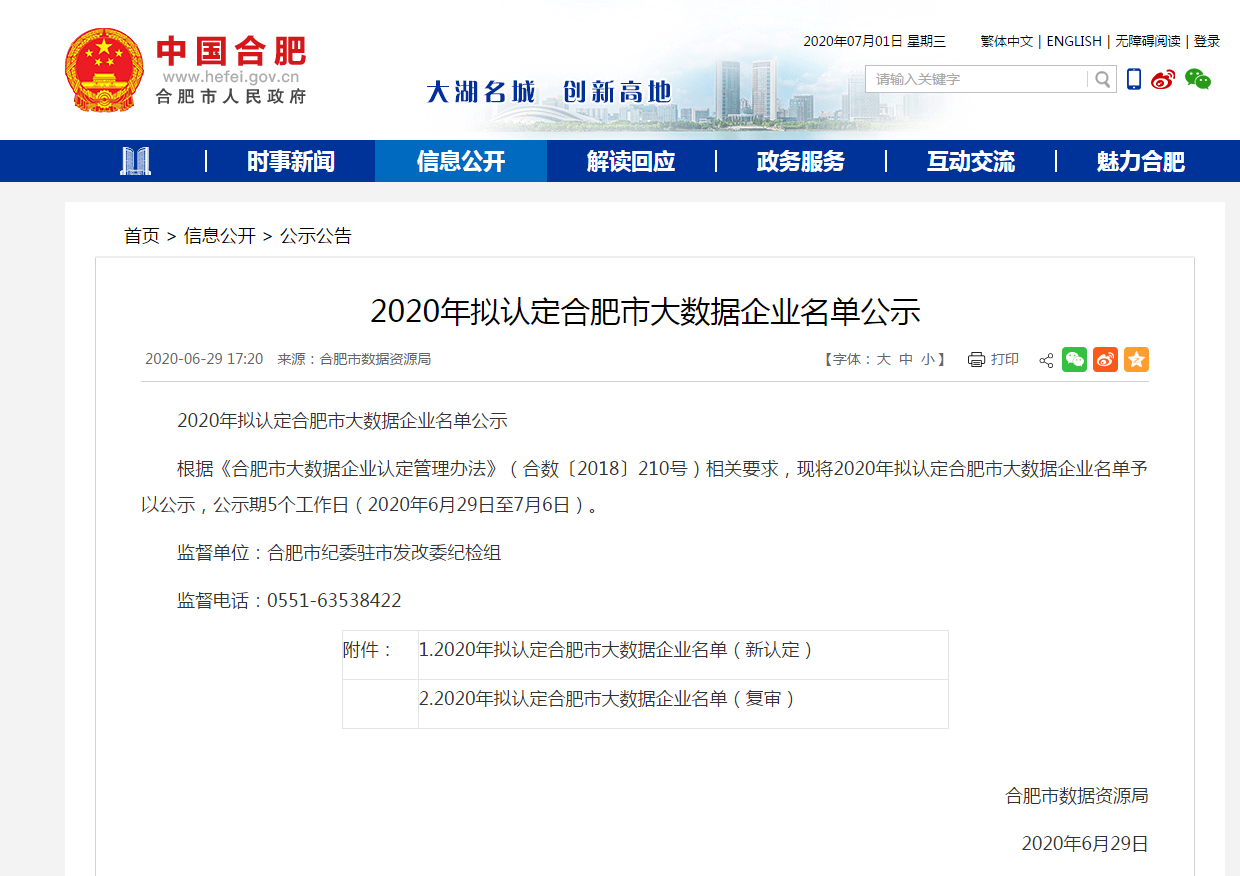热烈庆祝我公司“合肥大数据企业”申报成功