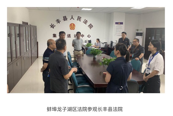 经我司德恩普组织安排,在八月中旬蚌埠龙子湖区法院闫峰院长一行参观长丰县法院集中送达,进行了考察学习送达工作。在考察过程中,我们认真听取经验介绍,广泛交流心得体会,对两家法院在队伍建设,审判工作,内部管理和法院文化建设等方面的情况进行了重点学习考察。